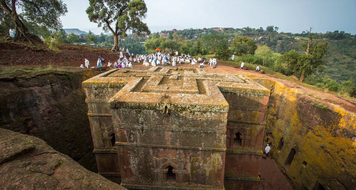 Marvel at the architectural wonders of Lalibela, where 11 rock-hewn churches are carved out of the mountain. These churches are still in use today and are considered as holy sites by Ethiopian Orthodox Christians.