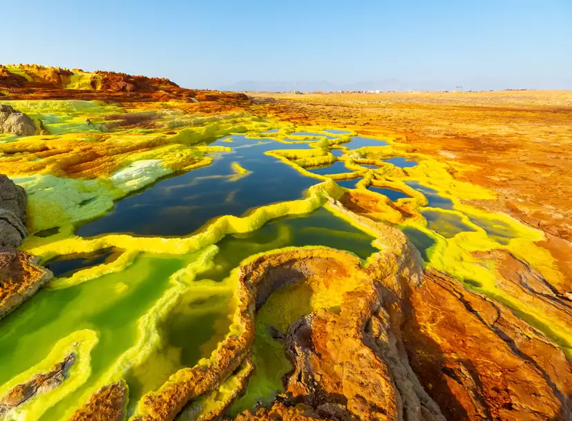 Venture into the extreme and alien landscape of the Danakil Depression, one of the hottest and lowest places on Earth. See the colorful mineral formations, the bubbling geysers, and the active volcano of Erta Ale.